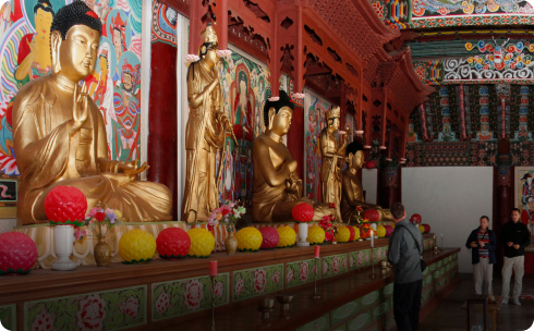 Один из пяти знаменитых буддийских храмов Кореи. Расположен в горах Мёхян.