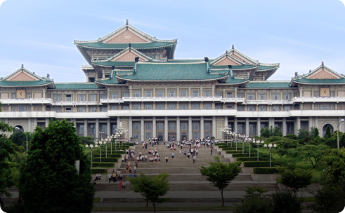 Национальная библиотека КНДР. Одно из самых красивых зданий в городе. располагается на площади Ким Ир Сена.